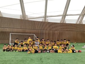 そして決断したことは、U-10リーグメンバーは人工芝室内練習場に移動してのアップとトレーニングを行うことに、小学5年生は、あえて人工芝室内練習場に移動しないで、150分にわたり予定したトレーニングプランを雨のスポルティフタウンで完結しました。