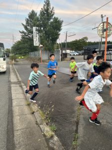 さて、一昨日の木曜日に小学1.2.3.4年生を対象に「ミニロードワーク」の2回目を試行してみました。ギッズ年代もいるため、④コース(0.5km)を新設して行ってみました。走る前にコースとルールの説明をして、挑戦するコースを決めてもらったのですが、予想に反して小学1.2年生が④コースではなく、少し長いコースを選択しました。そして、スタートとなって、自分の選んだコースを無事全員しっかりと完走してくれました。「次はもっと別のコースを走ってみたい!」という声がたくさん聞こえてきました。来週も水曜日と木曜日に試行したいと思っています。昨日の金曜日は、小学5年生のトレーニングに新しい2つのテーマを追加して取り組みました。秋になり、より実のあるトレーニングに心がけていきます。練習の合間に、佐藤重幸U-15監督が担当している中学3年生を中心としたトレーニングを見る時間をつくりましたが、今日のリーグ戦もあることから、熱が伝わってきた時間でした。