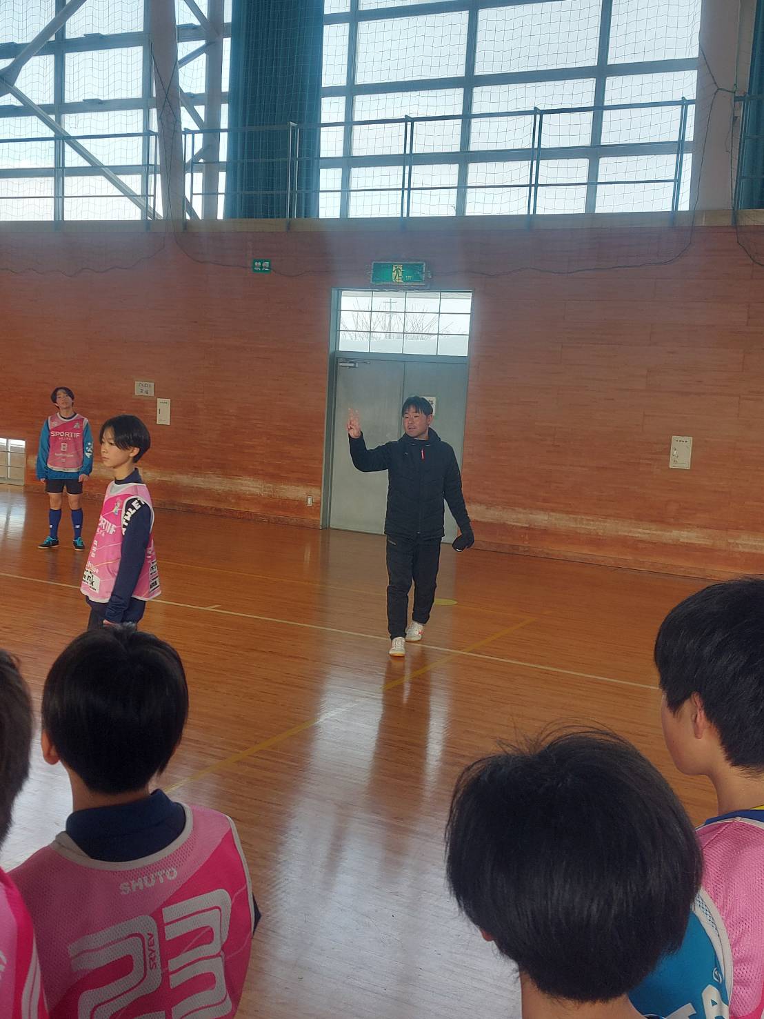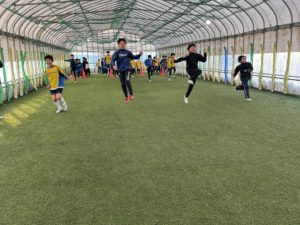 ※スポルティフドームでのトレーニング風景。最近は、各カテゴリーの練習を時間を見つけては、見学することにしています。特に注目していることは、冬季練習の命題のひとつとなっている基礎体力トレーニングで、それぞれの指導者が工夫をしながら、学年に応じてプログラムを実行してくれていることに目を見張らせられます。今日の小学4年生以下のフィットネストレーニングを第二・スポルティフドームで行いました。ダッシュ系、ジャンプ系、アイソメトリック系などで、高学年より負荷を少なくして取り組んでみました。明日の小学高学年のトレーニングからは、ムービングストレッチを復活したいと思っています。