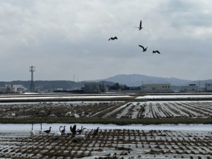 「三寒四温」という言葉が天気予報解説者のお話に出てくるようになりました。地面を見ると春の匂いがプンプン漂ってきているようです。スポルティフタウンの積雪も先ほど見てもらったら40cm位との報告と写真が送られてきました。田んぼの雪も消えかけ、北に渡る途中の白鳥の姿も見られます。その中には今年生まれた灰色の羽を持った白鳥もたくさん見られます。