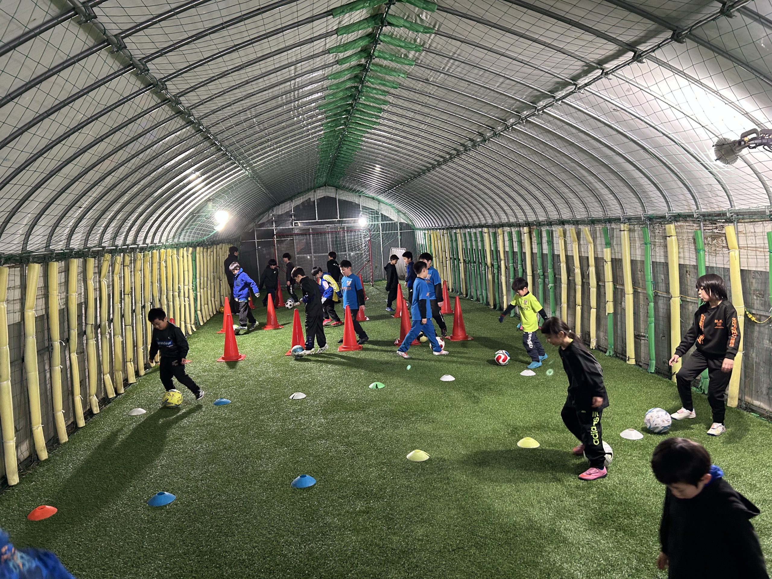 この日は、小学3.4.5年生が第1スポルティフドーム(人工芝室内練習場)で、「水曜キッズサッカー楽校(スクール)U-12」が第2スポルティフドームでのトレーニングでした。スクール(楽校)には。インフルエンザの感染などで全員揃いませんでしたが、相変わらず元気いっぱい、賑やかなトレーニングでした。