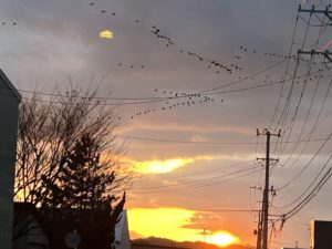 表題上の写真は、水曜日のスポルティフドーム前で撮影しました。時間は、トレーニングの始まる午後5時30分頃。北に帰る準備をしている白鳥たちが体力づくりのため、田圃で餌を食べて、夜の寝ぐらとなる川面に戻る様子をタイミングよくパチリ。その編隊は、しっかりと「声」をかけながら一糸乱れぬ「へ」の字を形成しています。この見事な編隊は、敵から身を守り、生き残るためには、重要な行動なのでしょう。おそらくリーダーを中心に、声をかけながら全体を誘導していると思われます。