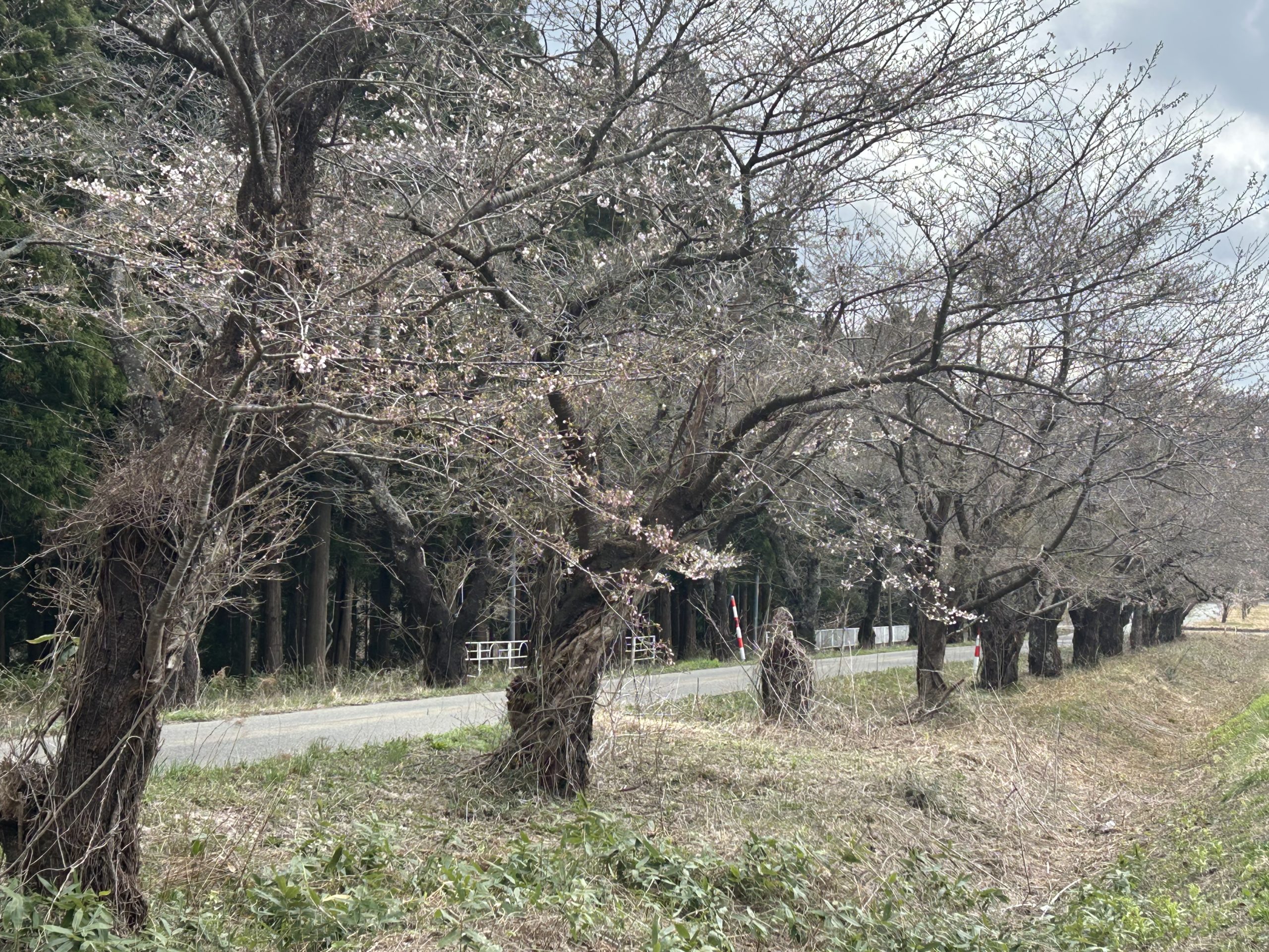 ※スポルティフタウン近くの戸島の桜並木。もうすぐ満開!秋田市の平野部にある桜は、満開となっているのですが、週末の強風と雨にも耐えながら、たわわな花つけて咲き誇っています。クラブホームのスポルティフタウン周辺の桜は、例年のことながら、平野部より標高が高いため、1週間ほど遅れての開花となるようです。どのくらいの標高差かと推測すると、おそらく20mくらいと思われますが、秋田空港もスポルティフタウンと同じような標高となっており、積雪量にも格段の差があって雪解けも遅くなっています。桜の開花が平野部より遅れるのは、こうした積雪と雪解けの時期の関係もあるのかもしれません。この地域のソメイヨシノは見事な花を咲かせるのですが、私の好きな風景はそんな中にあって、周辺の山に咲く山桜の美しさです。山々のみどりの中に点在する山桜はなかなか風情のあるように思います。この一帯は、あと2.3日ほどで桜の花が見頃となりそうです。桜の名所の穴場である椿台周辺地域に是非ともお越しになってはいかがでしょうか。