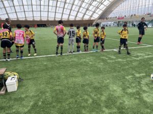 9月21日(日)「第27回あきしん杯争奪少年サッカー大会兼第53回秋田市秋季少年サッカー大会U-12」2日目が、アキタスカイドームで開催されました。この日は、予選リーグを突破したA.Bチームが、決勝トーナメントを戦いましたが、どちらも一回戦敗退となりました。