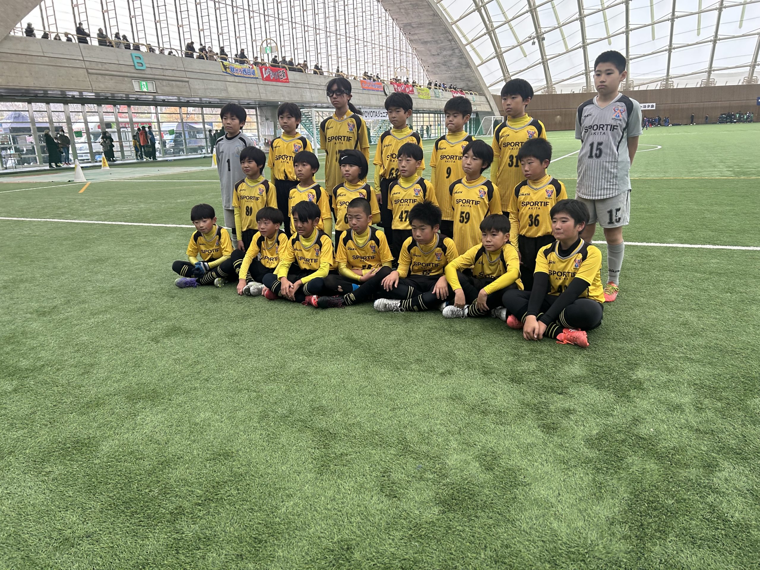 「第37回TOYOTAジュニアカップ少年サッカー大会秋田県大会』(新人戦)が、 11月22日(土)~11月24日(月)までの三日間にわたりアキタスカイドームで行われます。この大会は、秋田県内の地区予選を勝ち抜いた32チームが参加して、トーナメント方式で行われます。スポルティフ秋田から、Aチーム(アミーゴス)とBチーム(ボンボネーラ)の二チームが出場しました。