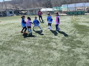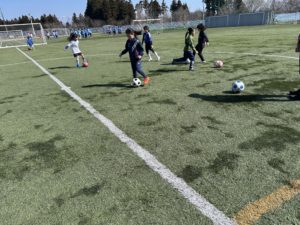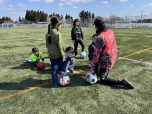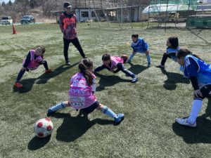 いよいよ、4月からチームを立ち上げ、活動を開始するスポルティフ秋田•女子チーム「イエロー エンジェルスU-10」のメンバーとなる週末スクールの女子選手6名が、小松コーチの指導で、事前トレーニングを3月20日(金・春分の日)にスポルティフタウンで行いました。現在11名の申込みがあり、全員そろっての練習を楽しみにしております